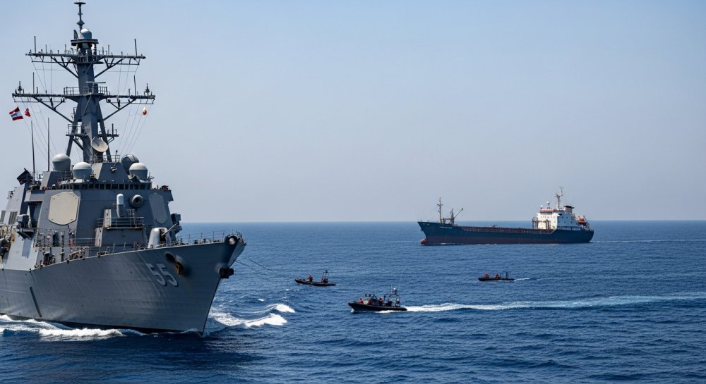 Military officials confirm the vessel was stopped after exhibiting suspicious behavior consistent with attempts to circumvent established naval protocols. The ship’s crew is currently being questioned, and the cargo is undergoing thorough inspection.
